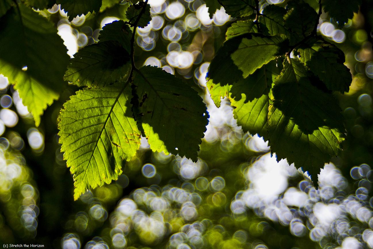 The leaves of this Birch tree are back-illuminated by the Sun, their serrated edges and heart-shape emphasised by the close focus; the remaining dappled light in the background has been rendered into a wonderful spatter of bokeh droplets, frozen in mid-glitter.