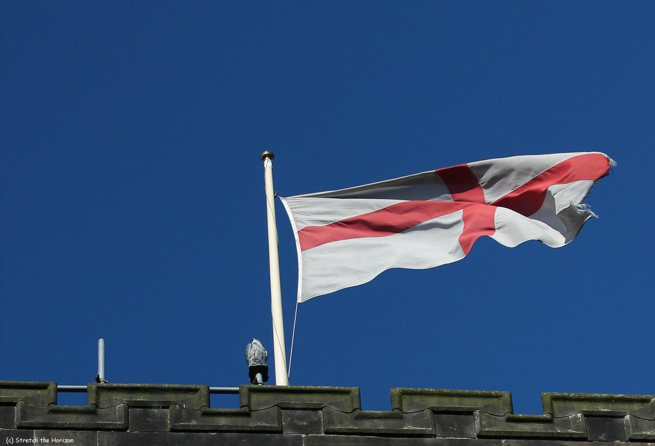 Sitting atop the ramparts of St Anne’s C of E church in Royton and beneath a fluttering St George’s Cross flag is this bird of prey statue, keeping away any Pigeons that have intentions of lingering a little too long and overstaying their welcome in the belfry: a model English Falcon to scare away unwanted feathered interlopers, no less…