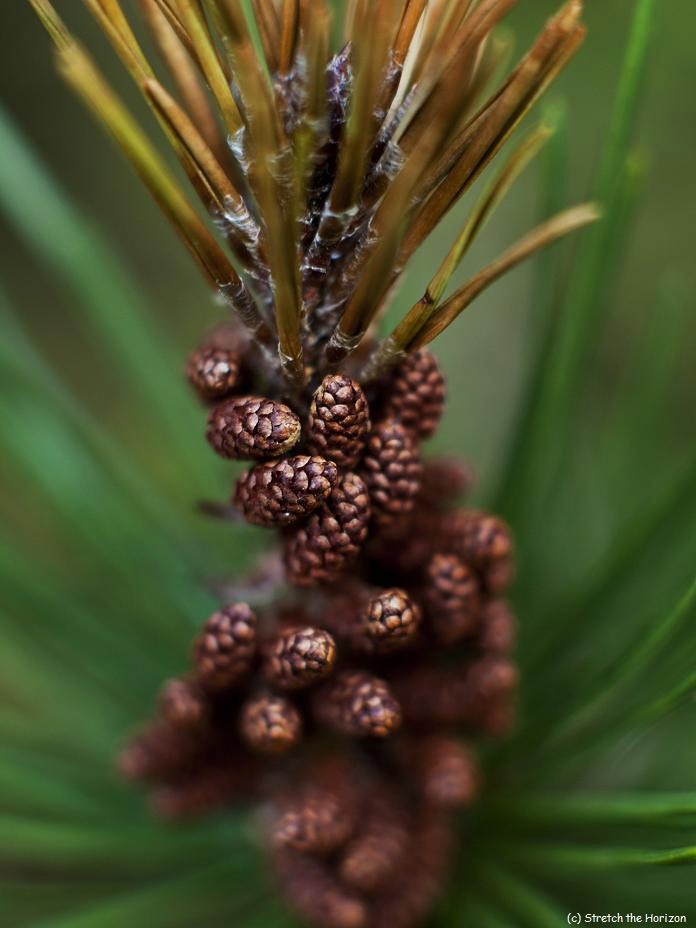The sprouting of this year’s Fir tree cones, unfurling their miniature armour plated seed carriers for the first time.