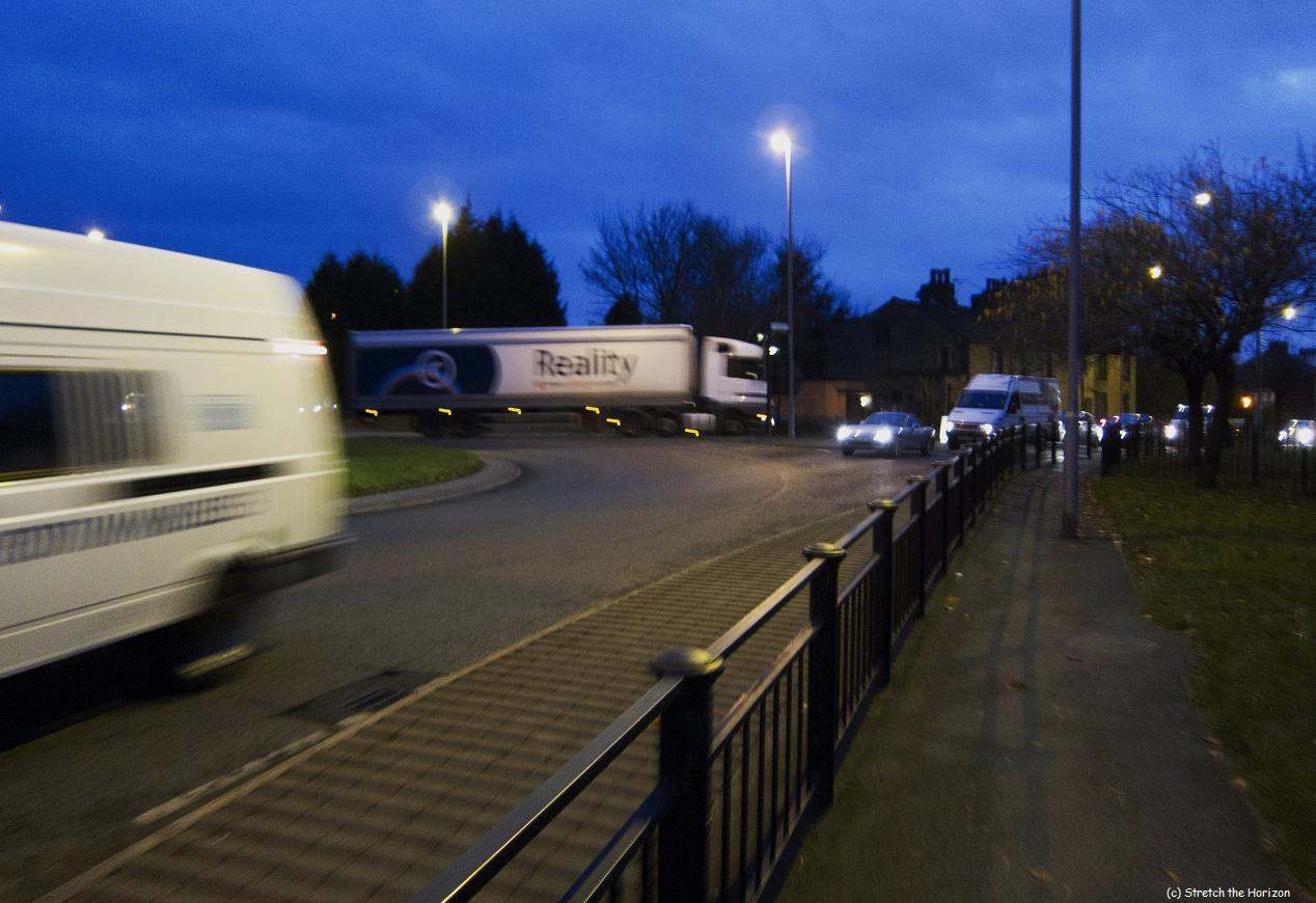 The daylight’s dropping away as the street lights start to glow overhead and the drivers on the roads strive to reach home in their cars, sooner rather than later…