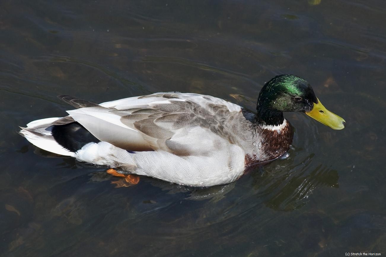 A water-splashed Mallard Drake glides gently across the Rochdale canal’s surface, seemingly oblivious to the moron with a camera just feet away!