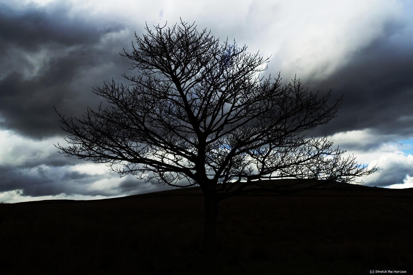 The pitch-black, bare branches of this Elm tree spreads its naked tendrils beneath an overcast sky, hopeful that just a slither of light will manage to escape…