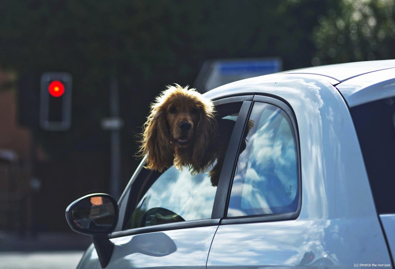 This Cocker Spaniel is taking full advantage of its owner’s car now stopped at the traffic lights on red!