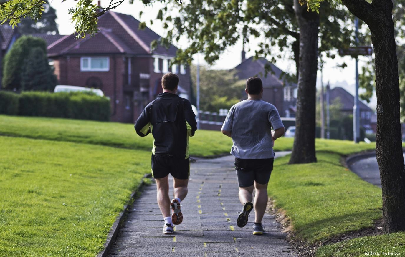 It’s Sunday morning and these two committed joggers are pounding the pavement in a ‘double slogging’ session, intent on releasing their natural endorphins and sweating out all those naughty carbohydrates (although to be fair, there’s only one of their T-shirts completely soaked through)!