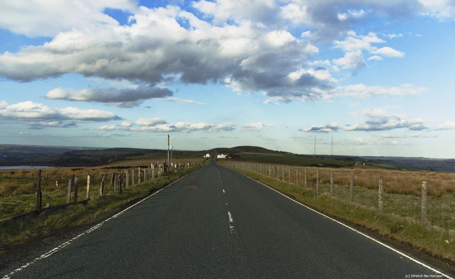 The pitch road stretches towards the clouded horizon, worn and faded by years of elemental battering…