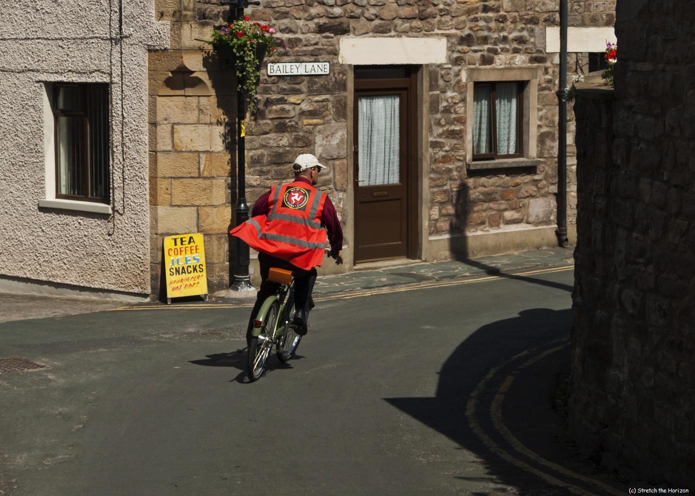 A brave cyclist takes a blind bend in Bailey lane, Heysham at speed, clinging to the hope there are no cars coming the opposite direction.