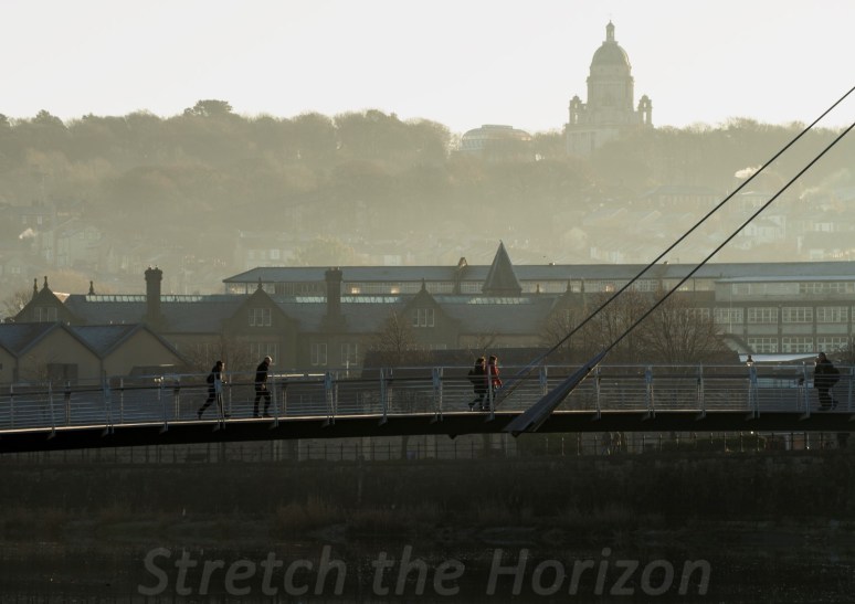 As dusk begins to settle on Lancaster in the UK, people are rushing off home across the River Lune via the Millennium Bridge, whilst on the distant horizon the Ashton Memorial’s bulk looms from within the trees of Williamson Park.