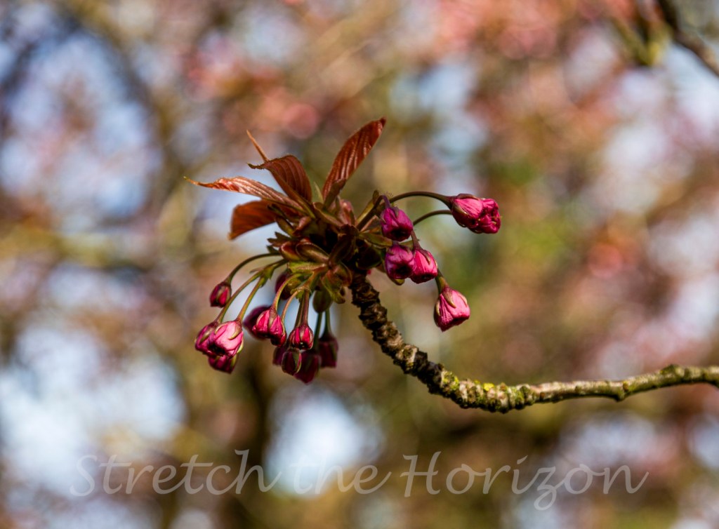 An unfurling Cherry tree blossom shows that the seasons have finally changed and Spring has arrived at last in Lancashire, UK (albeit blooming against a slightly noisy Bokeh).