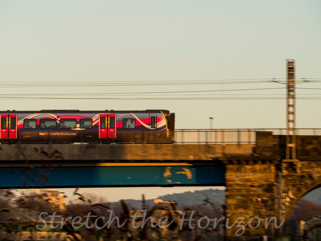 A train leaves Lancaster city centre and crosses the river Lune over the St George’s Quay bridge, bound on its journey towards Carnforth, then crossing the border from Lancashire into Cumbria and beyond.