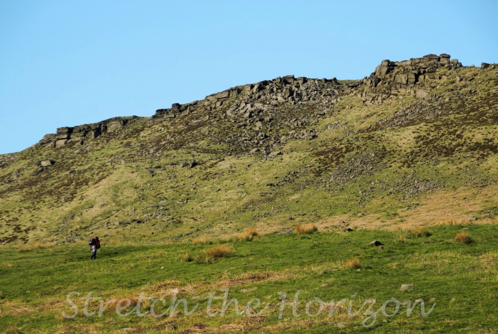 A lone rambler approaches the boulders and scree fields of Dovestone quarry at Dovestone reservoir in Greenfield, Oldham, Greater Manchester and is about to enter ‘the slog’ on Saddleworth moor.