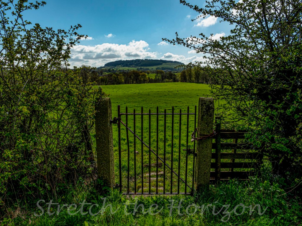 Over near Oakenclough in Preston, an old gateway still stands in place: the rusting, spiked gate chained and padlocked in place, the two concrete pillars reveal its age is not too ancient after all and the last remaining paving slabs we can see through the metal bars are uneven and buckled by roots beneath.