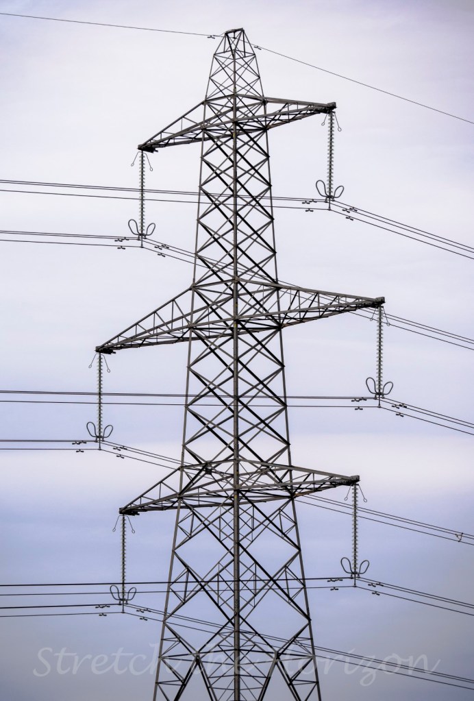 And surrounding its concreted stance at set intervals, other pylons run away in endless lines upon lines, their taut wires spooling out across the fields, hills, villages and towns in every direction, for as far as you can see: the perfect representation of a post-modern totem to our electrical God…