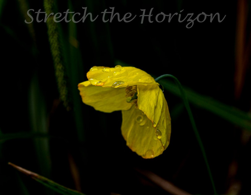 Raindrops cling to the delicate yellow petals of this Welsh Poppy, bending its stalk even further with additional weight to its light shade-shaped flower head.
