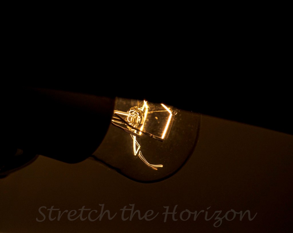 Close-up shot of a light bulb’s neon-orange element burning brightly.
