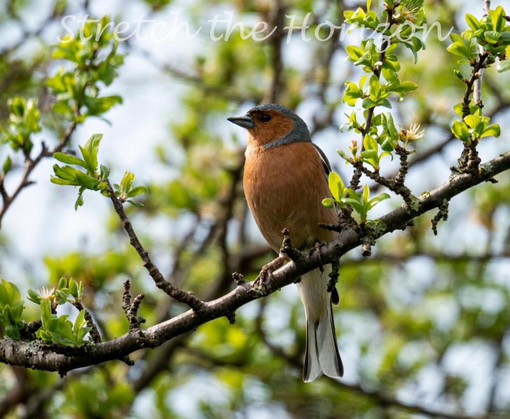 A male Chaffinch – his exquisite plumage failing at any chance of camouflage – perches, listening for a reply to his last-uttered song.
