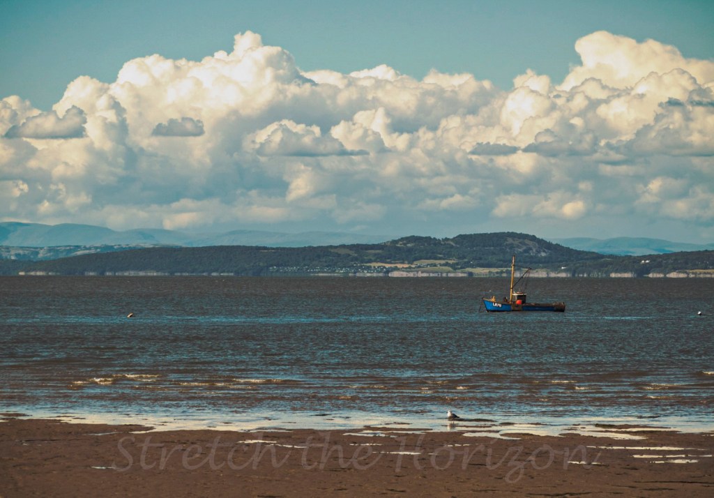 Looking across Morecambe Bay towards Grange-over-Sands on the Cumbrian peninsula.