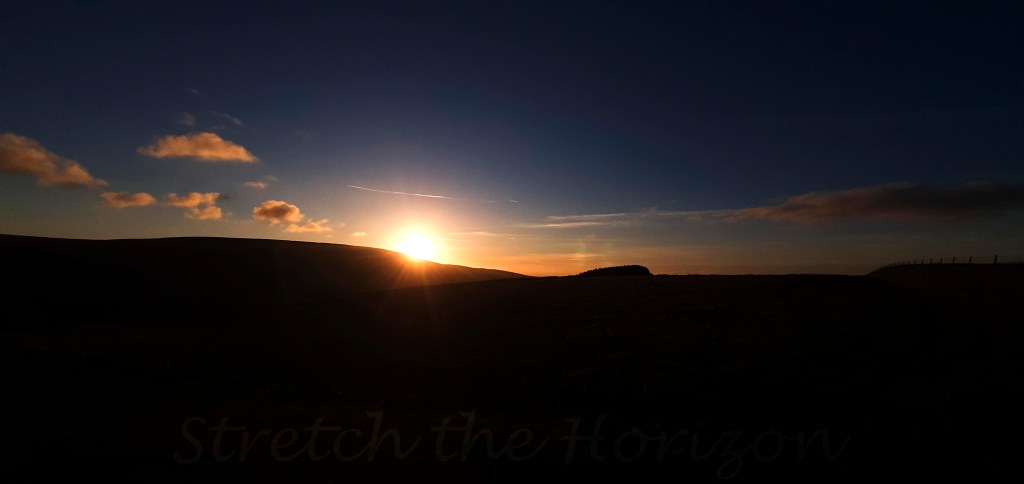 The Sun dips down on the slopes of Hawthornthwaite Fell in the Forest of Bowland at Over Wyreside, Lancashire.