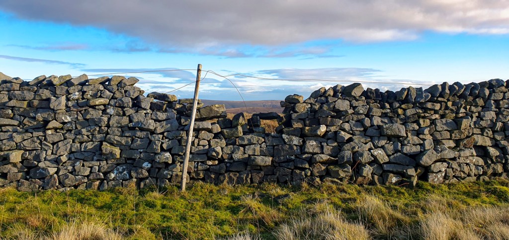 On the way up, I passed the same place at a drystone wall where I had spotted a discarded birthday balloon had lodged itself last time, after what I can only assume was a chaotic, wind-buffeted journey from God-knows-where: however, it would appear that during my sojourn elsewhere, a breeze had come along and dislodged the tenacious, partly-inflated plastic bag for hardier climes elsewhere.
