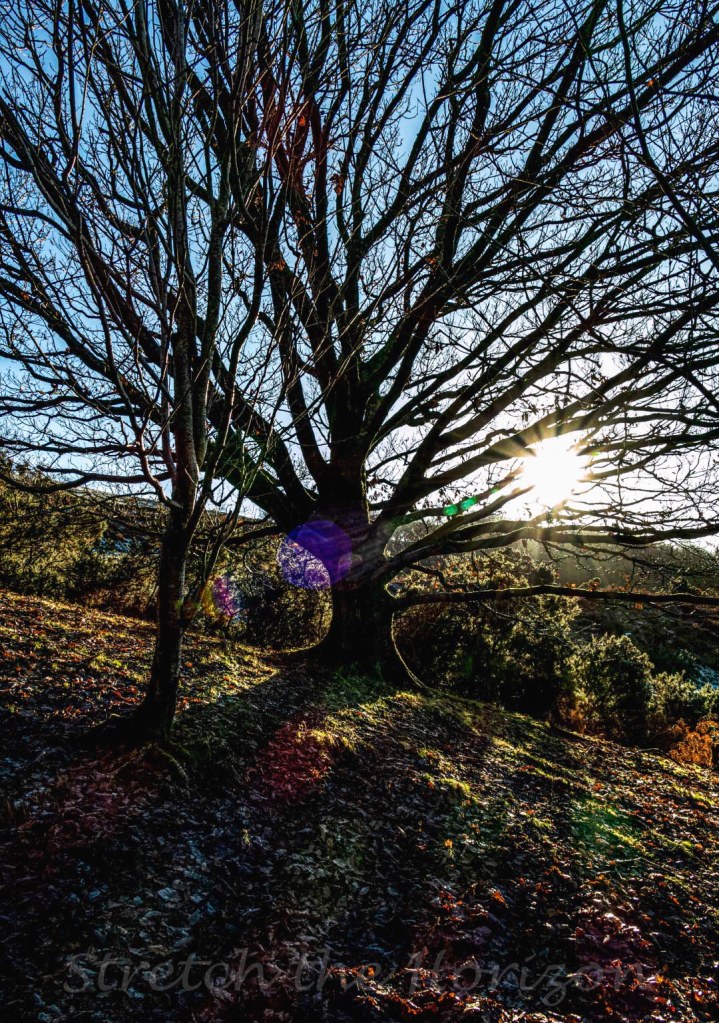 The Winter light’s refraction dancing through this camera’s lens seems to add a little magical dappling to this Oak tree’s naked branches.