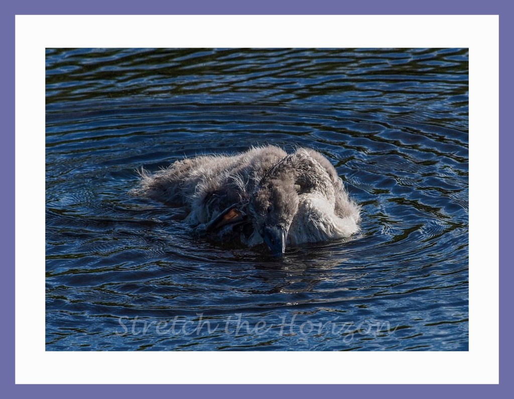 This downy Swan Cygnet – the classic ‘ugly duckling’ – is busy scratching an itch with one of its webbed palmate feet, oblivious to the world (and photographer) around them…